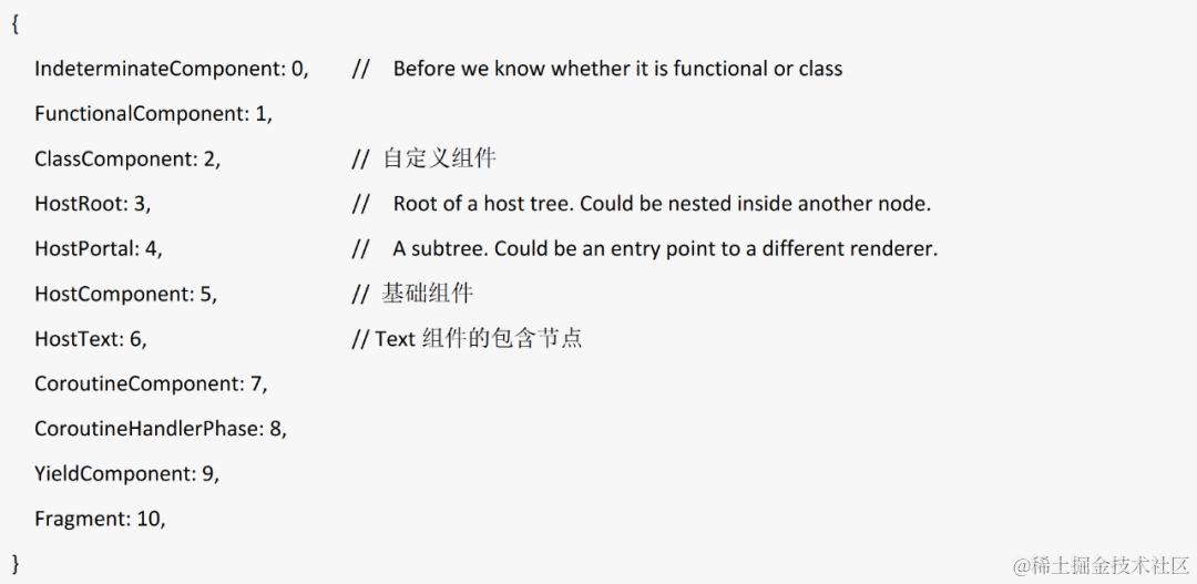 React为每种类型的节点都分配了一个数字编号,具体为: