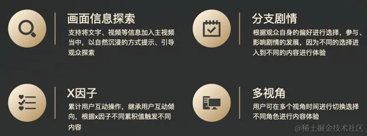 交互框架在业务层提供若干已封装好的默认布局模板,包括分支剧情,画面信息探索,多视角,X因子等,使用方只需修改对应的DSL文件即可实现和内容对应的交互功能,相关功能简述如下: