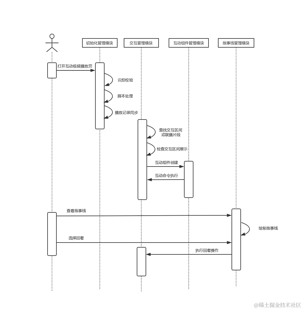 在技术层面,爱奇艺实现了四个主要模块,包括初始化管理模块,交互管理模块,互动组件管理模块,故事线管理模块,功能简要描述如下: