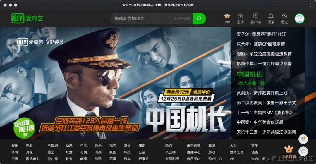 选择安装后,桌面上会出现一个新的App图标,即为打开PWA应用的入口。点击图标,打开爱奇艺快捷版,可以看到一个界面更加简洁的爱奇艺首页,没有浏览器的Tab标签、地址栏以及工具栏等: