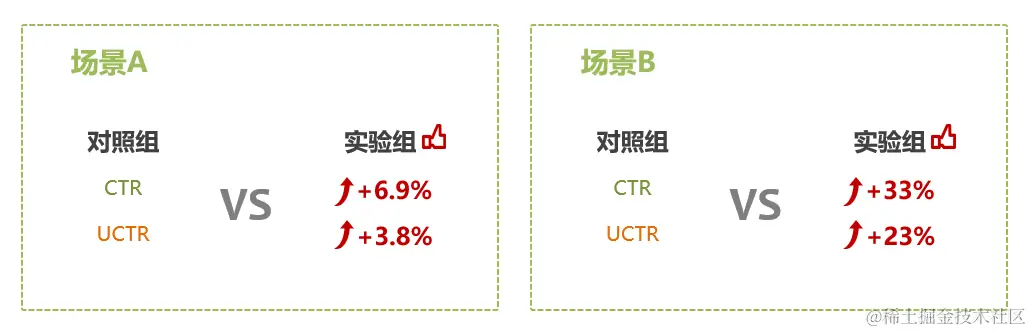 上图是两个场景展位维度的CTR与UCTR数据,可以看到实验组,尤其是最优分桶的提升比较明显。下面可以看看一些海报维度的效果示例: