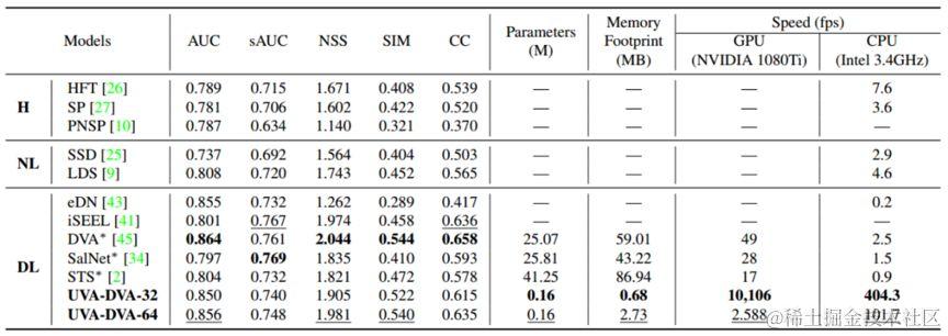 作者在 AVS1K 数据集上进行模型评测,具体结果如表 4 和表 5 所示。从表中我们可以看出 UVA-DVA-64 达到了和其他高性能模型相当的性能,但是模型只有 2.73M,速度达到了 404.3 FPS,而 UVA-DVA-32 性能虽略有下降,模型却只有 0.68M,速度达到了 10,106 FPS。