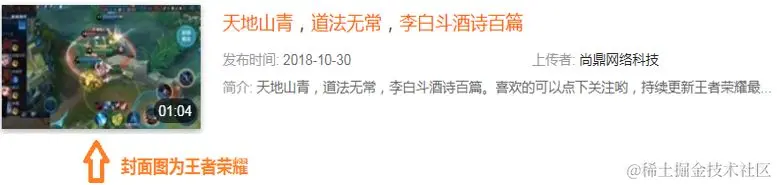 b) 标题为“天地山青,道法无常,李白斗酒诗百篇”,会生成“唐诗”、“李白”这样的标签。但是从封面图看,该视频其实为王者荣耀游戏: