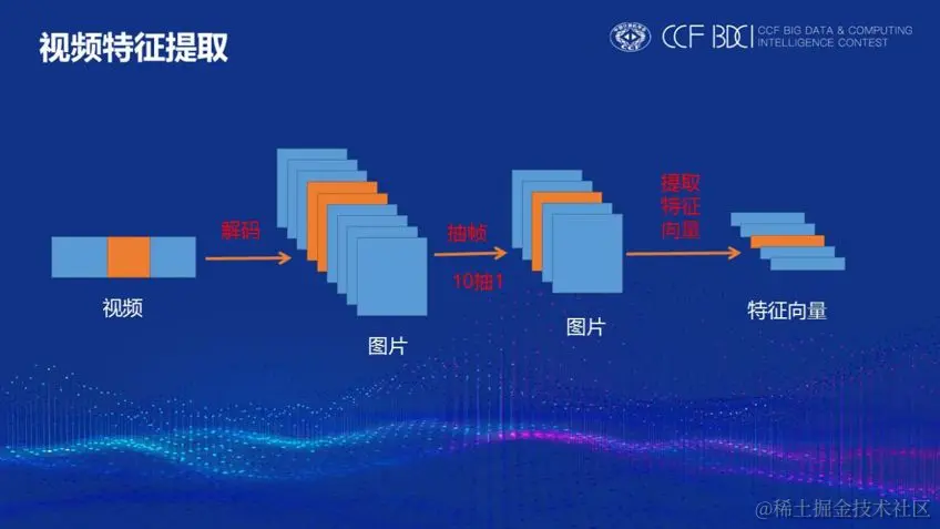 要实现侵权视频侵权片段在版权视频的查找,需要先把视频进行解码成帧图片,然后提取关键帧的特征向量,基于帧特征向量的集合进行视频匹配。