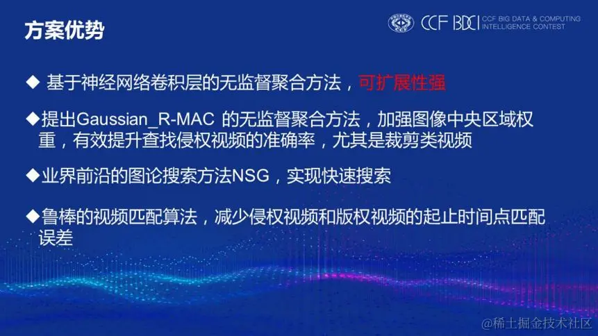 除此之外,视频匹配算法对于结果的贡献也非常重要,这个算法更像是专家系统,不仅要完成本职工作,还要能对前面算法的弱点进行补偿。