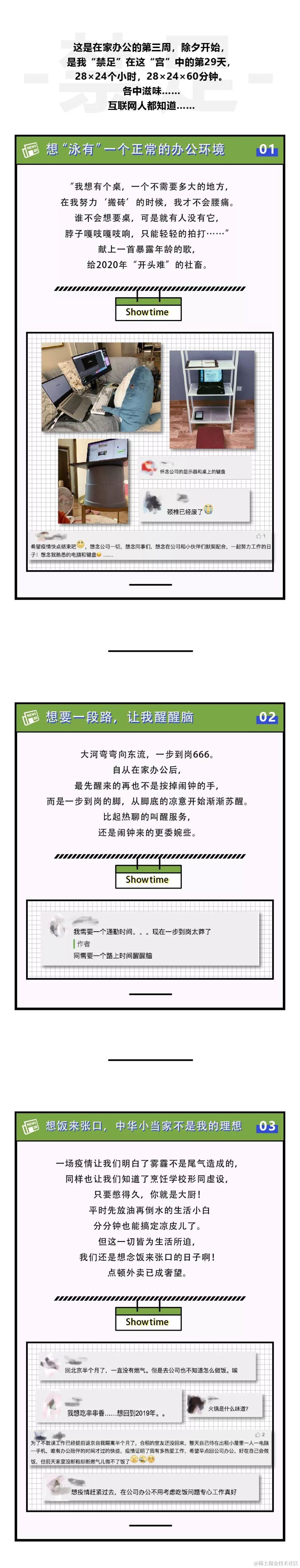爱奇艺er在家办公的第三周,想见你! 爱奇艺技术 2021-08-28 114 阅读1分钟 在家办公的第三周\ 虽相距“甚远”\ 但依旧高效协同 我们“隔离疫情”\ 却见证了“战友情” 希望病毒早些被消灭 早日战胜疫情**** 文末留言 说说你的云办公吧!\ 扫一扫下方二维码,更多精彩内容陪伴你! \