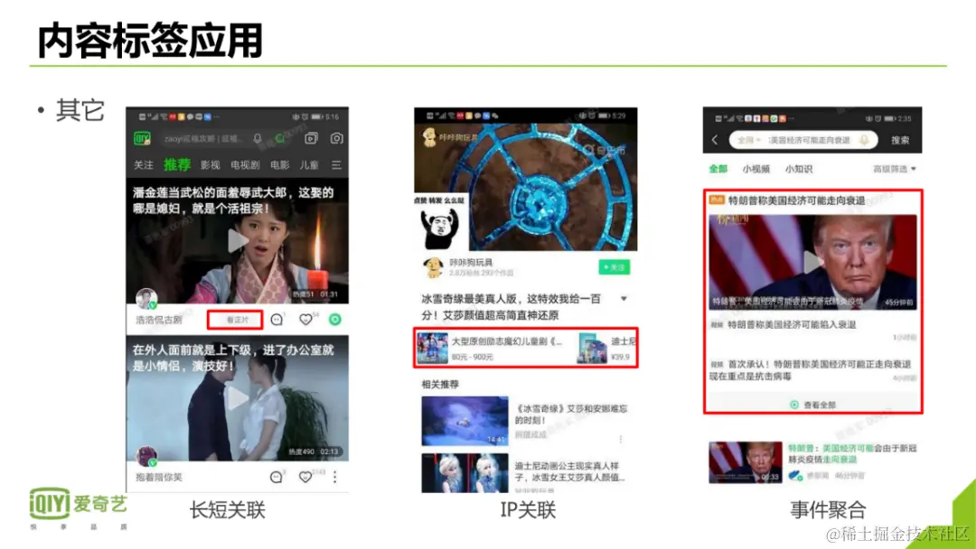 最后给大家介绍一下内容标签在爱奇艺的一些应用:\