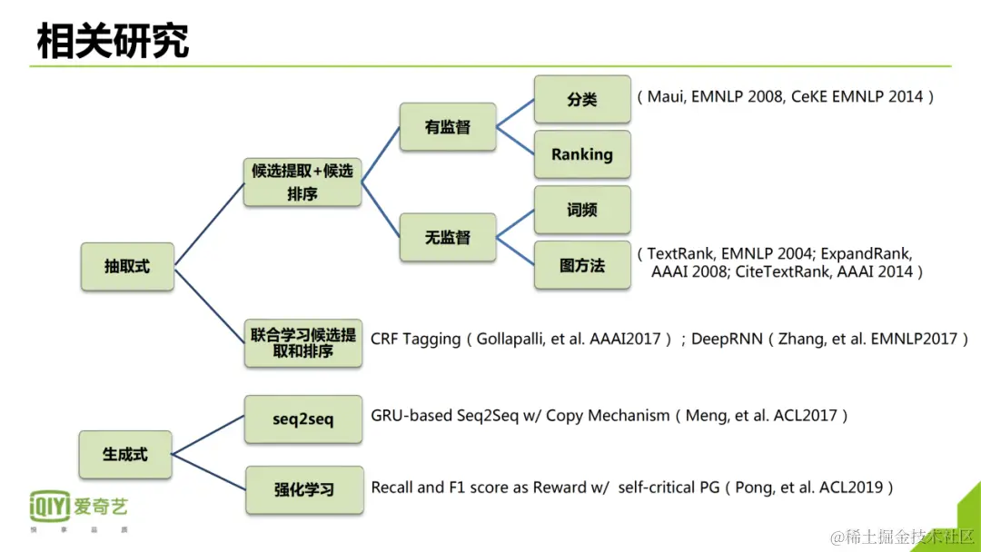 第二类是生成式,通过生成的方式,来生成关键词和短语。
