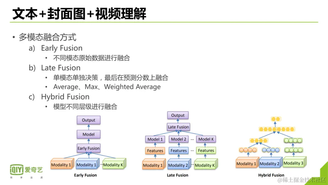 那么接下来的一个问题就是,不同模态怎么去融合,主要有三种方式: