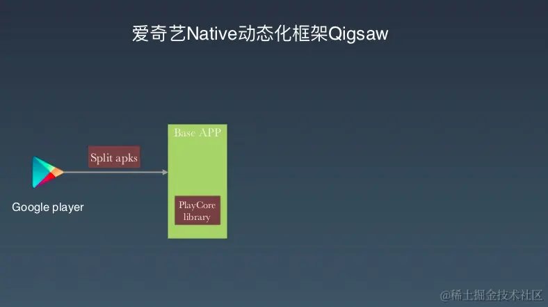 这里重点介绍一下 Qigsaw 框架。Google 开源 Google APP bundles 之后,我们看到一丝曙光,就是可以复用 APP Bundles。Google 将他的一些组件插件放在 Google Play Store 上面,然后底层的 runtime 负责合并和加载。