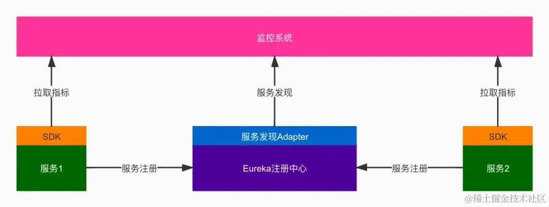 • 监控系统从注册中心,自动发现要监控的服务实例列表