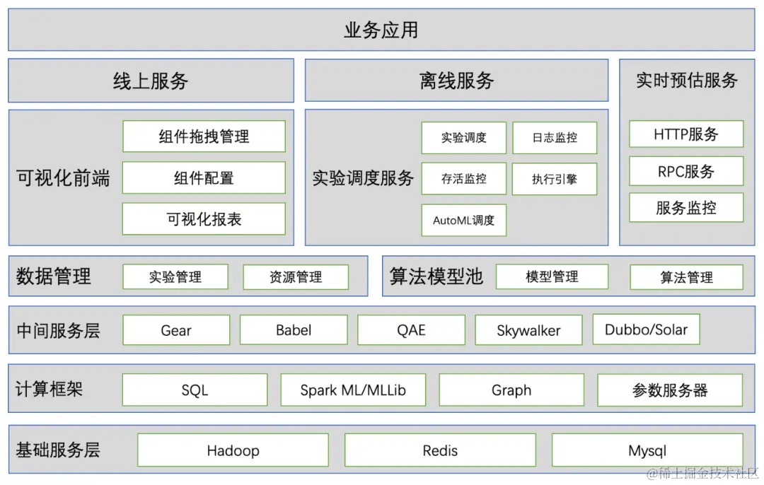 1. 核心算法基于分布式机器学习框架封装,以开源封装为主、自研实现为辅,满足快速上线基本算法需求;