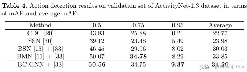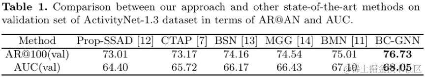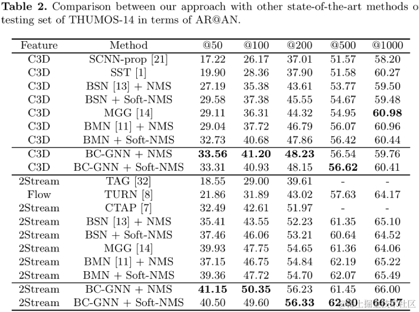 在 BC-GNN 中,将候选时序片段的内容(content)作为图的边(edge),将候选时序片段的边界(boundary,开始点和结束点)作为图的节点(node),然后设计了一种更新边和节点特征的推理方法,将更新之后的特征用来预测起始点概率和内容的置信度,最终生成高质量的 proposal。该方法最终在 ActivityNet-1.3 和 THUMOS14 这两个公开数据集的时序动作提名生成任务以及时序行为检测任务上均达到了领先水平。\