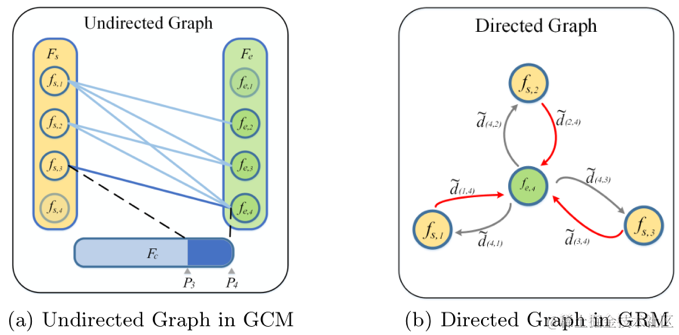 在有向图中,节点和边的特征更新之前,连接两个节点方向不同的两条边共享同一个特征向量。