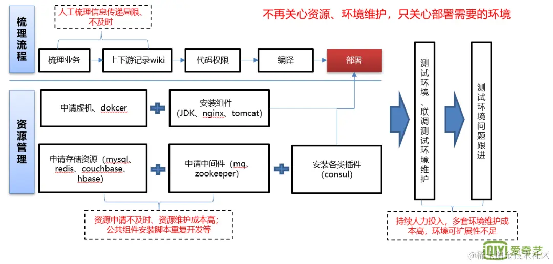 测试环境是项目测试的关键环节,其部署效率、稳定性、连通性直接影响项目的迭代效率。在测试环节中测试环境一直是行业中的较为薄弱一环,面临很多的问题,比如: