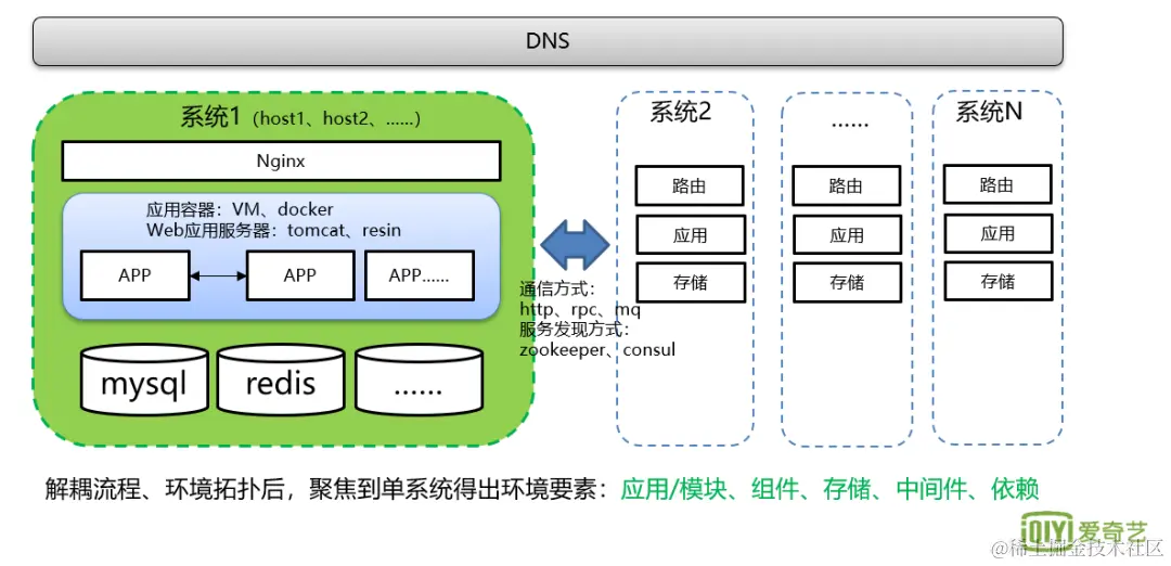测试环境梳理流程清晰后,聚焦到测试环境部署环节提炼出不同种类系统的测试环境拓扑,并得出了测试环境管理的五要素:存储、中间件、应用、组件、依赖,而其中,应用就是测试环境管理的最小单元。
