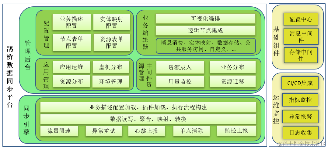 4. 高可用。 稳定性是业务的基石, 对数据同步来说,异常重试、限流、监控、告警等基础能力必不可少。