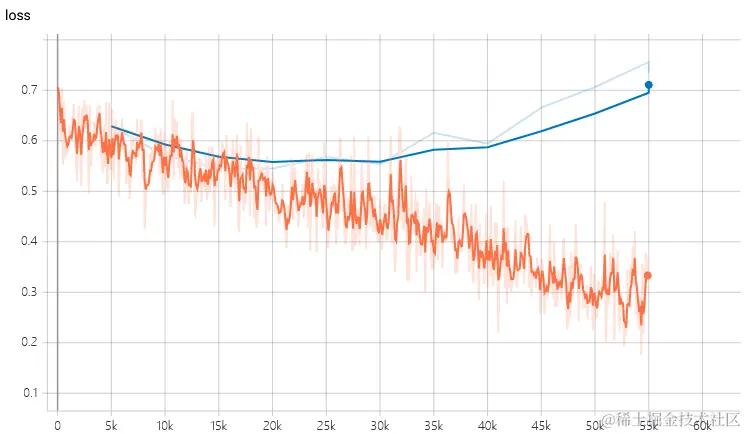 理论上,只要我们重写TFR源码中_GroupwiseRankingModel类的compute_logits方法,就能够让TFR支持正则化了。具体的代码上如何处理可以参考这里(如何解决TensorFlow Ranking框架中的正则化问题)。在加入正则化项后,跟上图同样的模型训练时就没有那么严重的过拟合现象了: