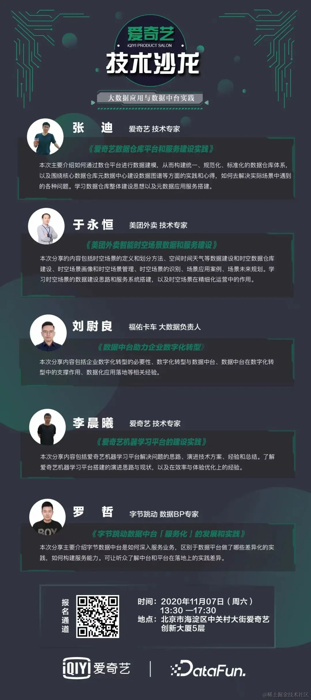 明天见 | 大数据应用与数据中台实践沙龙——不见不散 爱奇艺技术 2021-08-28 60 阅读1分钟 也许你还想看 i技术会 | 爱奇艺效果广告探索与实践\ i 技术会笔记 | Druid在爱奇艺的实践和技术演进\