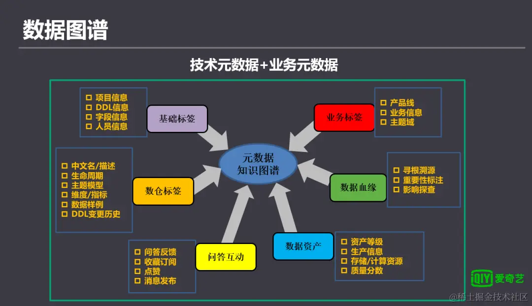 在以往,开发或者使用过程中,如果需要数据,大部分都是通过线下沟通的方式,找产品、找开发,经过若干轮的不懈努力才能找到,这种方式会消耗很大的沟通成本和人力成本。当找到数据后,又面临着如何理解数据、如何正确使用数据,即使有着良好的文档规范,也难免出现更新不及时、信息表达不准确甚至某种信息无法在文档中进行表达。如果命不好或者信息传递不准确,还会出现找到的数据和预期不符,需要重新进行沟通寻找。基于元数据中心,我们建设了数据图谱服务,用于数据发现和数据理解,在数据图谱建设时,有着清晰和明确的目标:创建高效的环境,支持快速的“找数据”,直观的理解和使用数据,实现指导数据开发、提高开发效率等“用数据”需求。