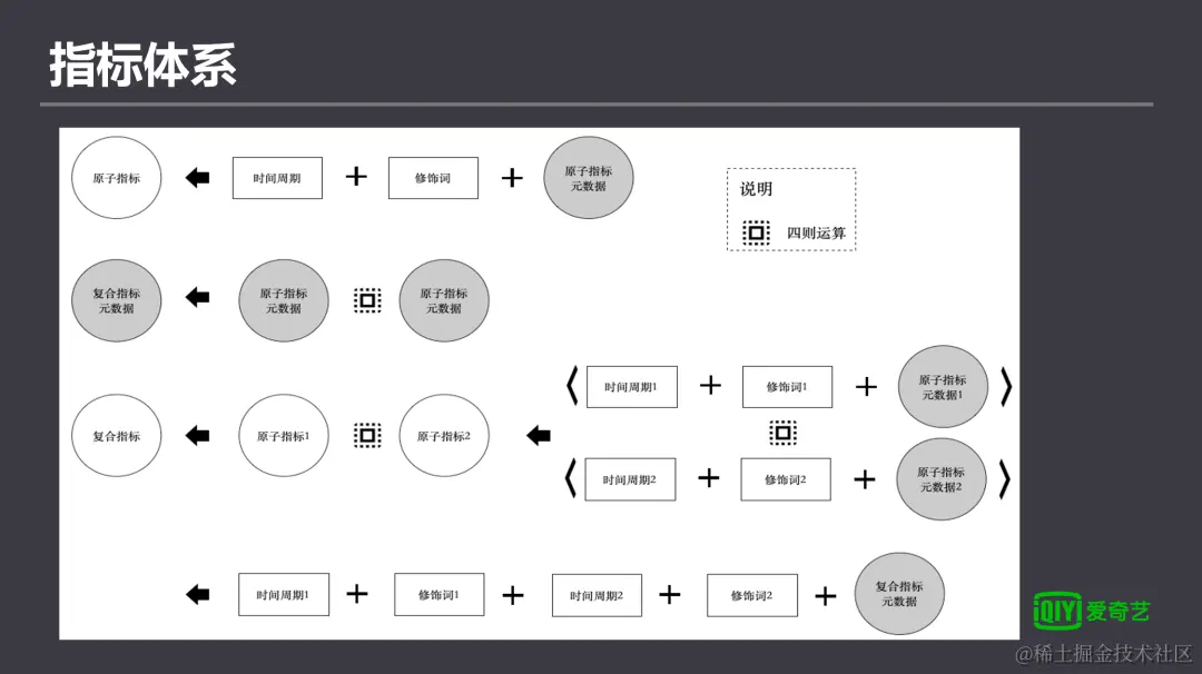 统计指标: 分为原子指标和复合指标,是指标元数据的实例化,代表了具体的事实衡量指标。