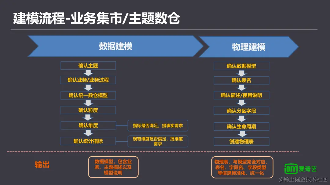 如之前所述,统一数仓作为底层模型和数据的基础来源,业务集市/主题数仓基于已有的底层模型进行建模,主要包括数据建模,物理建模(当然,可以通过统一数仓业务建模阶段输出的业务总线矩阵更加了解业务)。