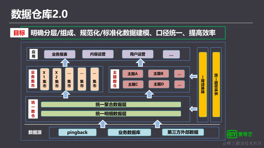 针对1.0的缺陷,我们对数仓架构进行了升级,并逐渐向数据仓库2.0时代演进。在数仓2.0设计之初,首先需要明确大方向和目标。