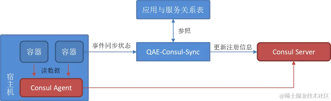 每个QAE应用代表一组容器,应用与服务的映射关系是松耦合的,根据应用实际所在的DC将其关联到对应Consul DC即可,后续应用容器的更新、扩缩容、失败重启等状态变化都会实时体现在Consul的注册数据中。