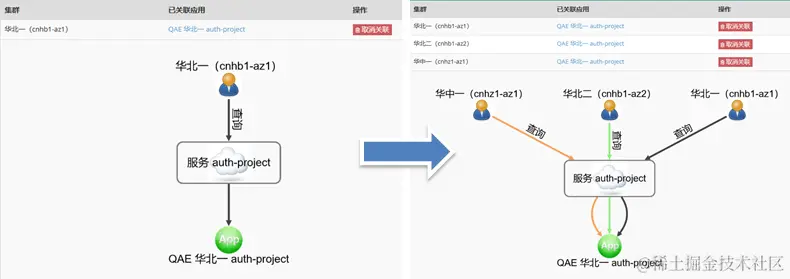 针对本身并没有做多DC部署的服务,如果可以在冗余DC注册,那么单个DC Consul故障时,其它DC还可以正常发现。因此我们修改了QAE注册关系表,对于本身只有单DC部署的服务,系统自动在其它DC也注册一份,如下图所示。