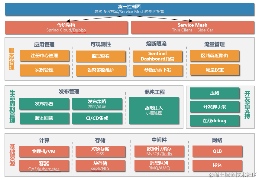 * 统一的微服务基础设施,包括: