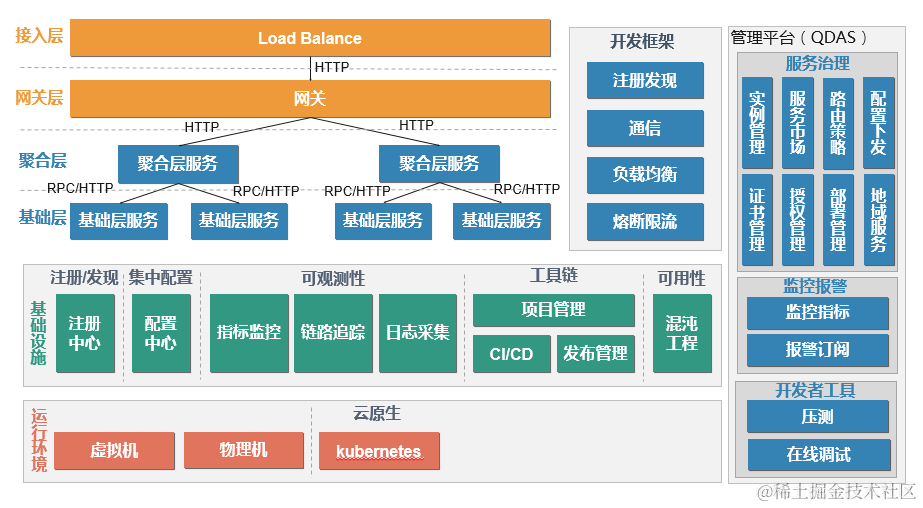 * 统一的微服务平台:QDAS(QIYI Distributed Application Service,爱奇艺分布式应用服务),提供微服务应用生命周期管理、服务治理、服务市场等功能。