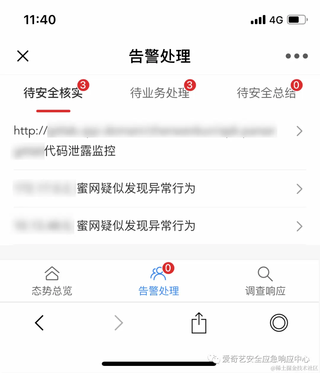 - 完成移动端小程序开发,方便安全人员远程处置安全事件。