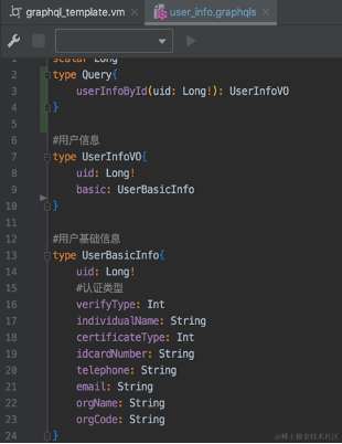 为了方便后端快速接入新增微服务,达到支持API动态扩展目的。项目中通过Velocity定义schema模板,通过Java注解、反射机制动态生成graphqls模板文件,如图3-6所示: