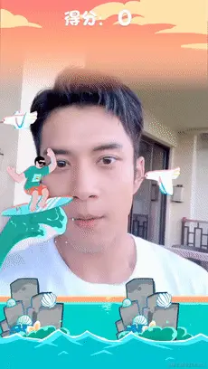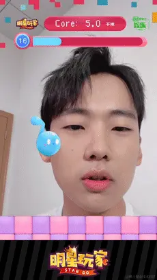 为了实现互动小游戏,爱奇艺自研的AR拍摄引擎VideoAR, 集成了同样自研的AI引擎SmileAR,通过AR消息触发+贴纸渲染的形式,为AR拍摄道具提供了基础支持。