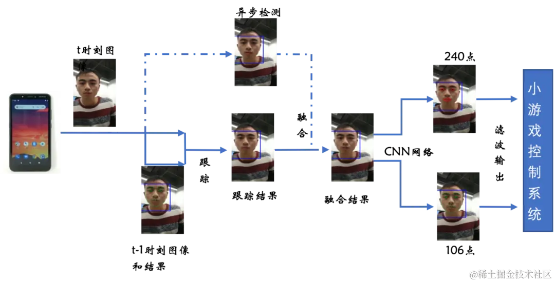 1. 降低时延,提升操控准确性。 通过将耗时较长的人脸检测模块放在异步线程中的方式,在主线程中通过跟踪算法来跟踪脸部的运动,由此大幅降低了时延。