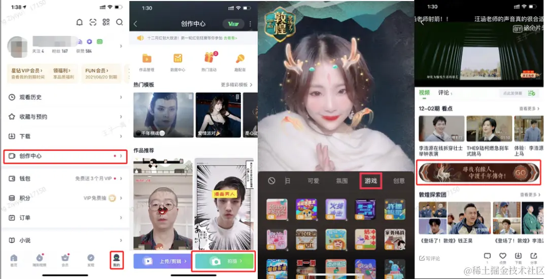 用户可以打开爱奇艺,在“我的”—“创作中心”—“拍摄”—“道具”中,找到对应的小游戏进行体验;也可以探索在观看IP剧目时,寻找我们为IP定制的专题活动,参与游戏体验还能获得红包、周边等奖励。
