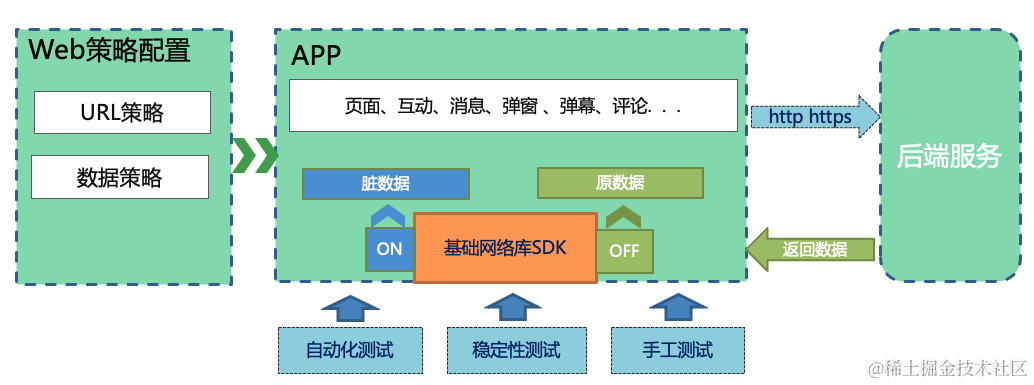 1)策略配置是一个独立的Web化模块,APP内“脏数据”注入规则都由策略配置控制。