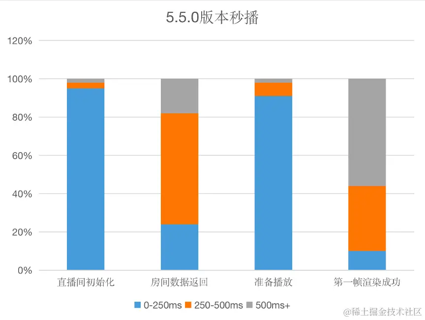 通过埋点,统计出不同阶段的耗时情况。这里以优化前的5.5.0版本举例,如图所示: