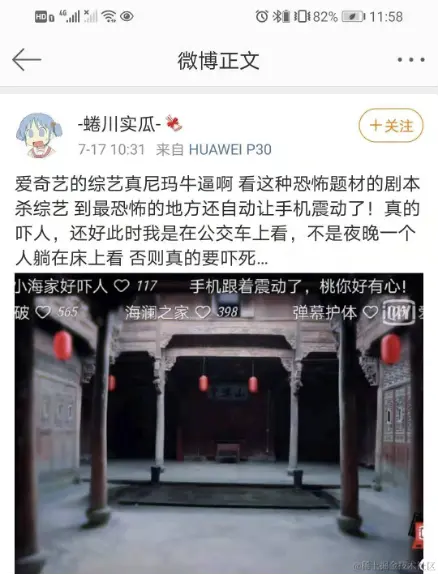 在以往的明星推理综艺节目中,任剧本如何精彩,观众也只能在三维空间中观看一个二维平面,而无法真实感知现场氛围。为弥补这一遗憾,调动用户的多维感官, 提升用户的沉浸感,爱奇艺在《剧本鲨》中上线了关门音效、恐怖振动等效果,从触觉上唤起用户的生理感知,让节目视听从2D变成3D。