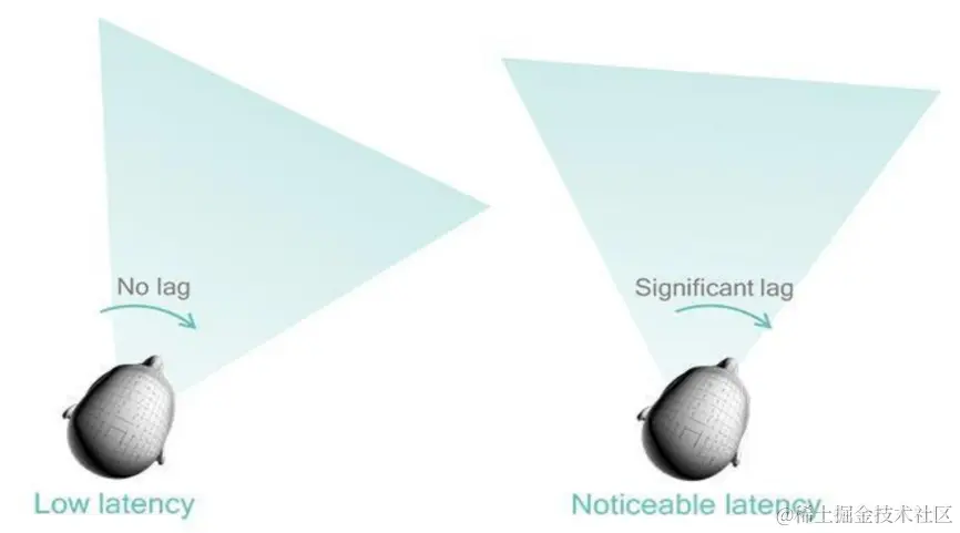 MTP(Motion-To-Photon)是输入动作(头部转动)与屏幕更新显示(从刷新的屏幕发出的光线)之前的时间。