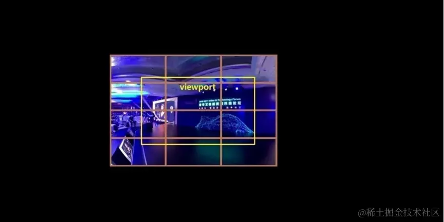 这样做确实能够解决部分问题,能降低一些解码的负担,但是这种划分是不太理想的。 从上图中仔细观察就可以得到答案:如果用户的视口在图上位置,我们需要同时解码9个小块(即解码全图的9/16),但其实用户主要视口都在这9块中的最中心的1块上,边缘的8个小块,虽然都被解码出来,但仅仅渲染一点边边角角。解码资源还是被浪费了很多。