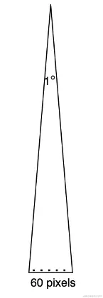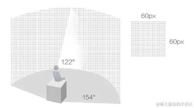 以视网膜屏幕的手机为例,假设用户距离手机屏幕30cm,手机屏幕在用户视野中水平所占据的度数大约是10度。根据苹果对视网膜屏幕的界定,这样的屏幕宽度大约是 600 个像素,也就是相当于,每一度视场角被分配了 60 个像素,即 60PPD,而这就意味着在视觉上达到了视网膜级别的效果。