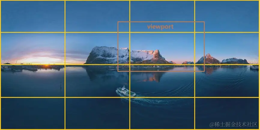 用户看到的这个区域,我们称之为 “视口”(Viewport) ,即是上图里的黄色区域。