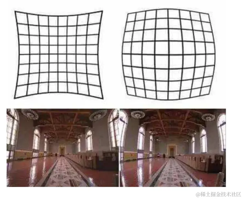 切向畸变, 透镜与相机传感器平面不平行,多是安装偏差导致。图像会像“躺着”一样。