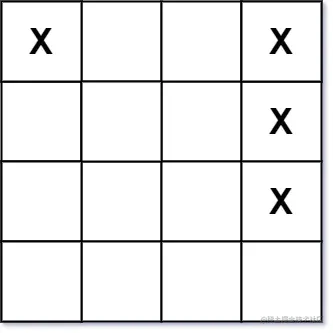 遍历矩阵的每个位置,如果该位置为 X ,如果在位置合法的情况下,它的左边或者上边有 X ,那么不符合题目中的战舰不能相连的条件,直接进行下一个位置的判断,否则将结果 result 加一,遍历结束得到的 result 即为答案。