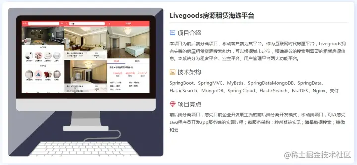 项目亮点:前后端分离项目,感受目前企业开发最主流的前后端分离开发模式;移动端项目,可以感受Java程序员开发app服务端的实现过程;微服务架构;秒杀系统实现;海量数据搜索;镜像和云