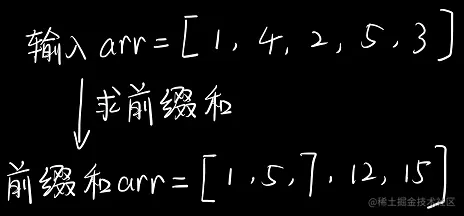 例如,对于用例arr = [1,4,2,5,3],注意,此时arr已经是输入数组的前缀和: