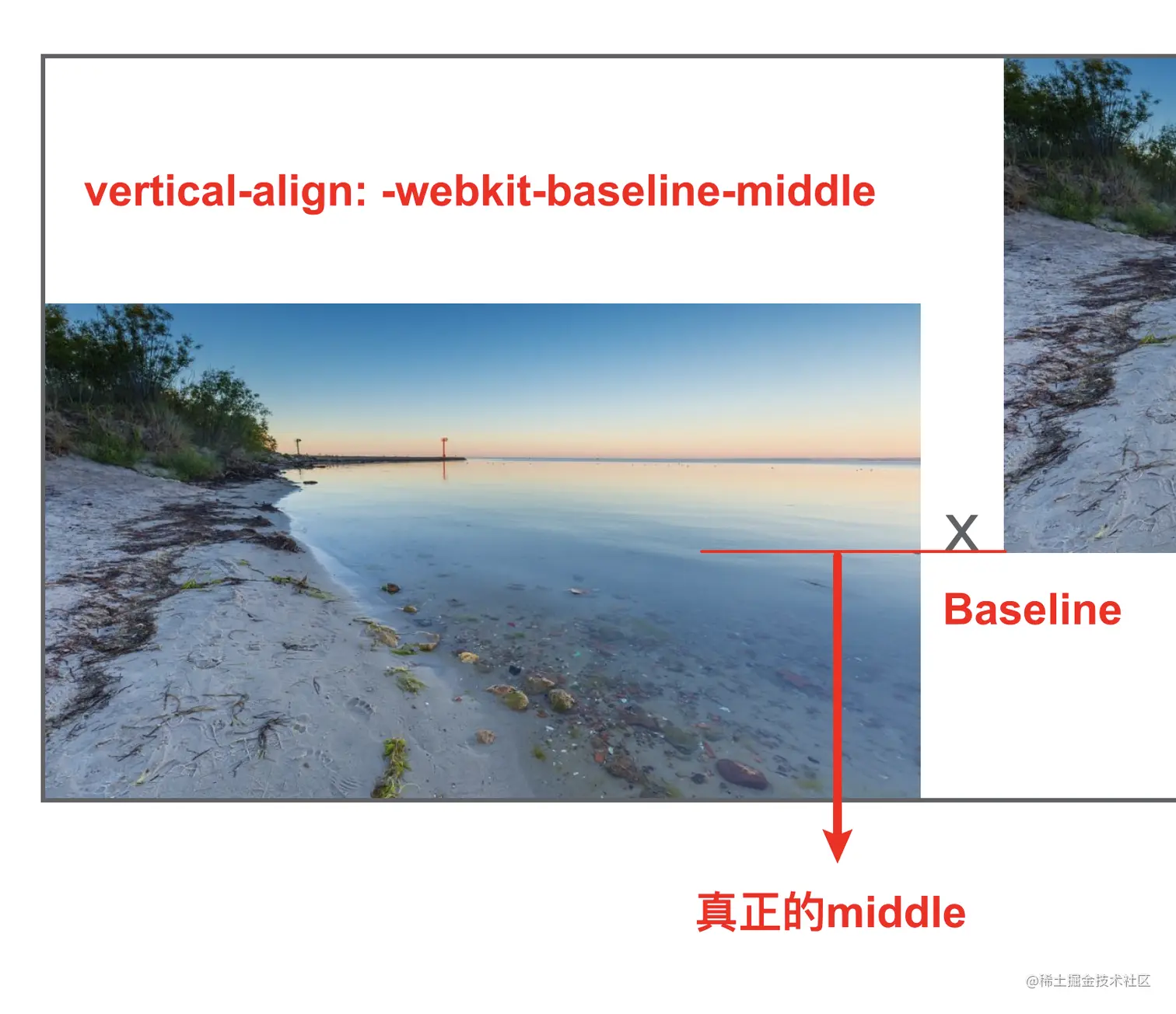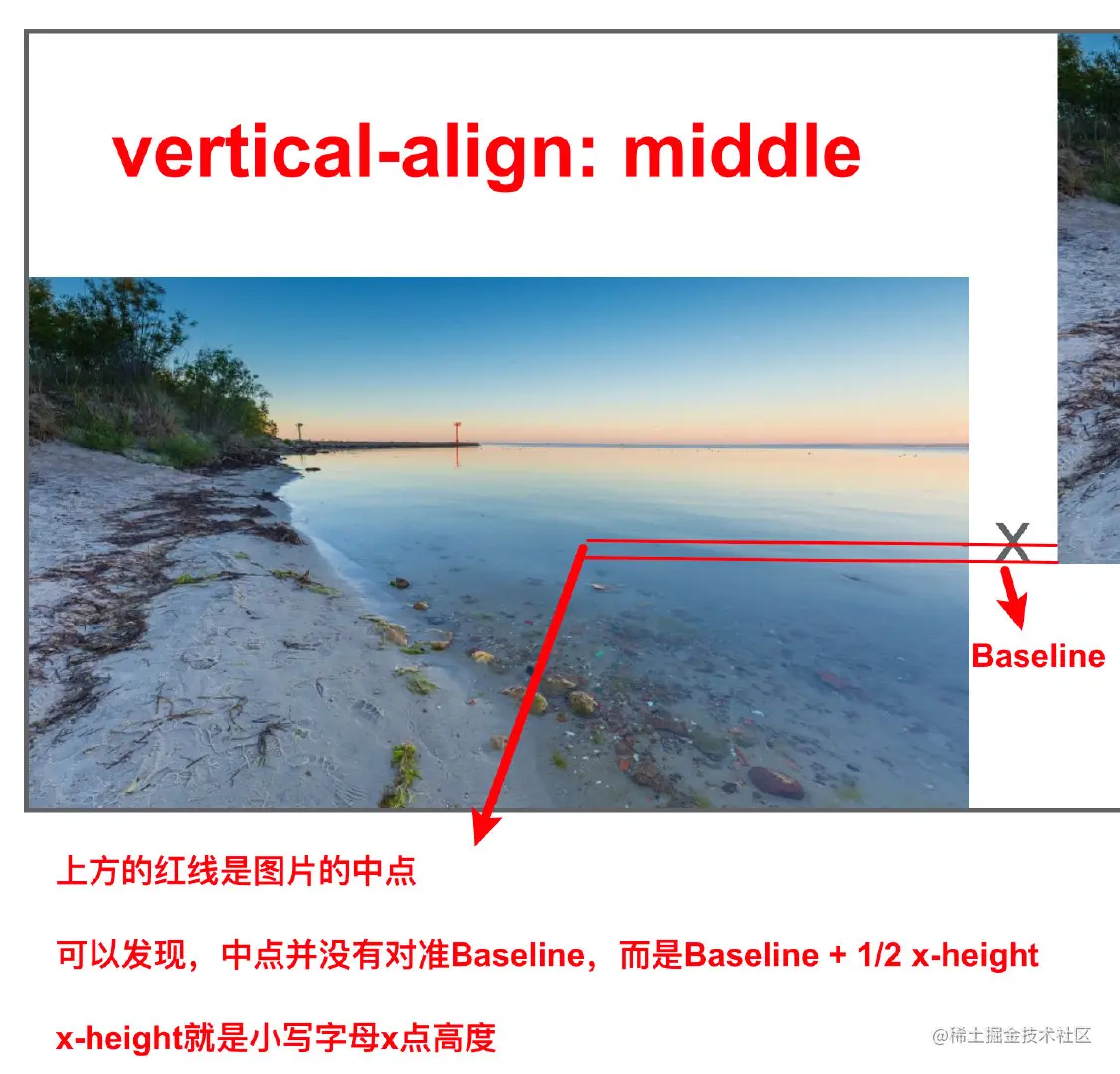 但是关于middle这个值:我想说一点就是,middle并不是真正的middle,W3C规范规定middle是中间再加一个x-height的高度,而-webkit-baseline-middle是真正的中间。
