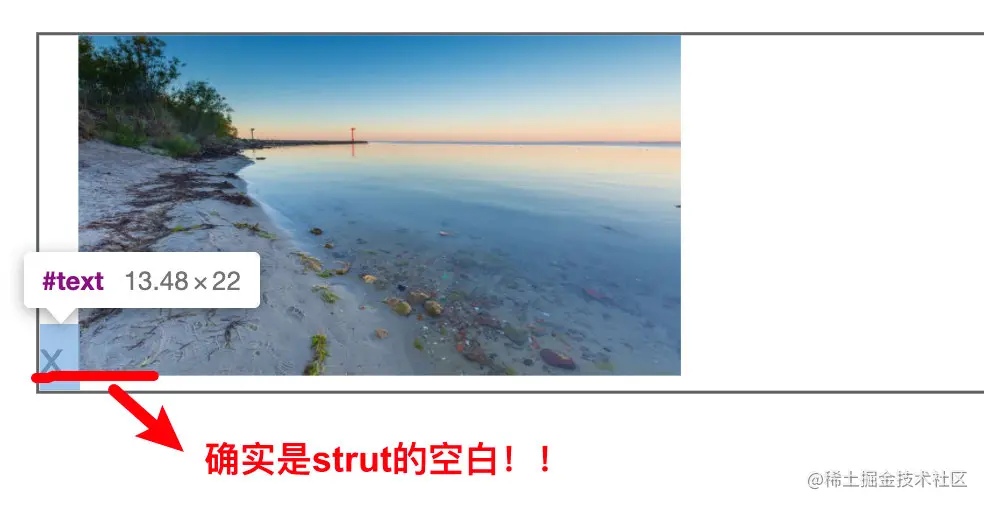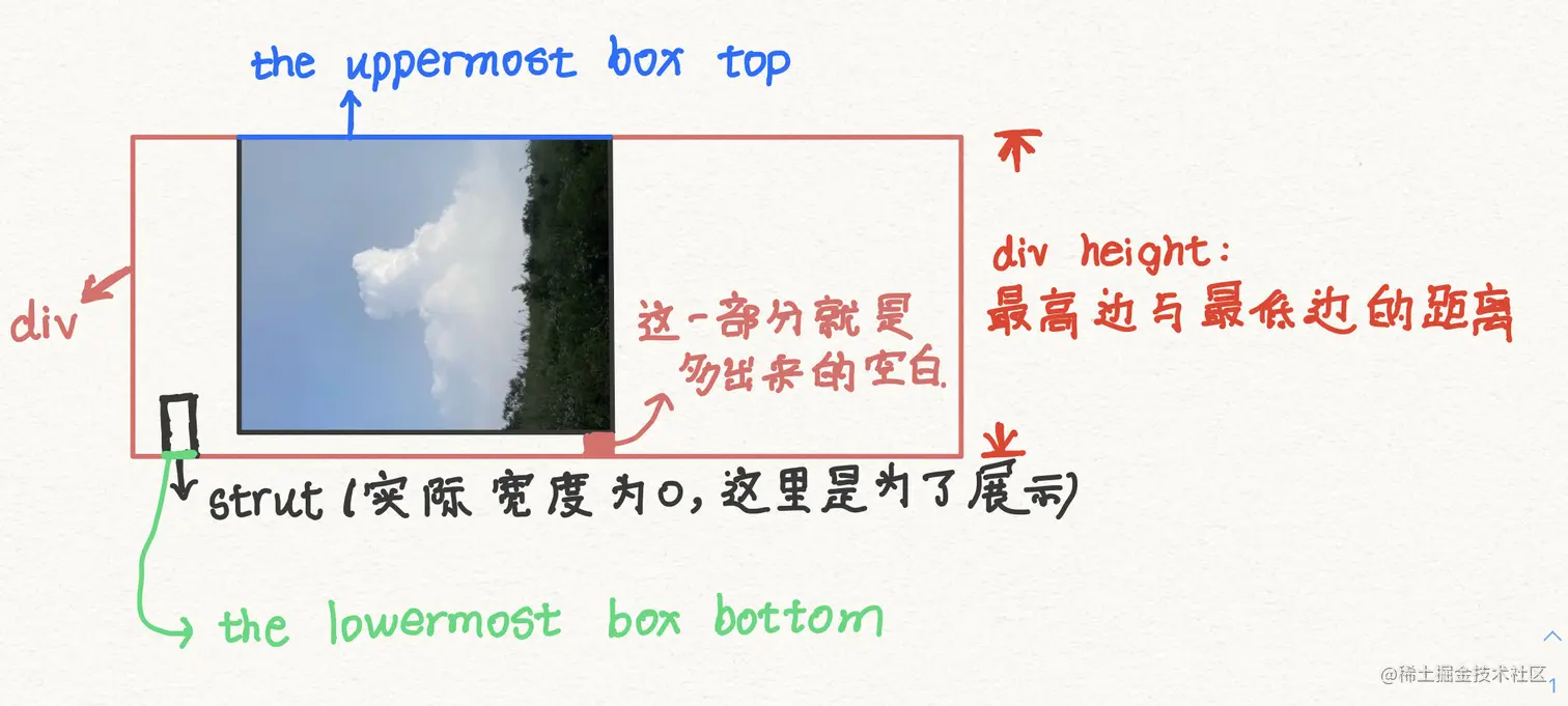 没错,此时此刻div的高度就是strut的高度,先上一张图来展示空白如何而来: