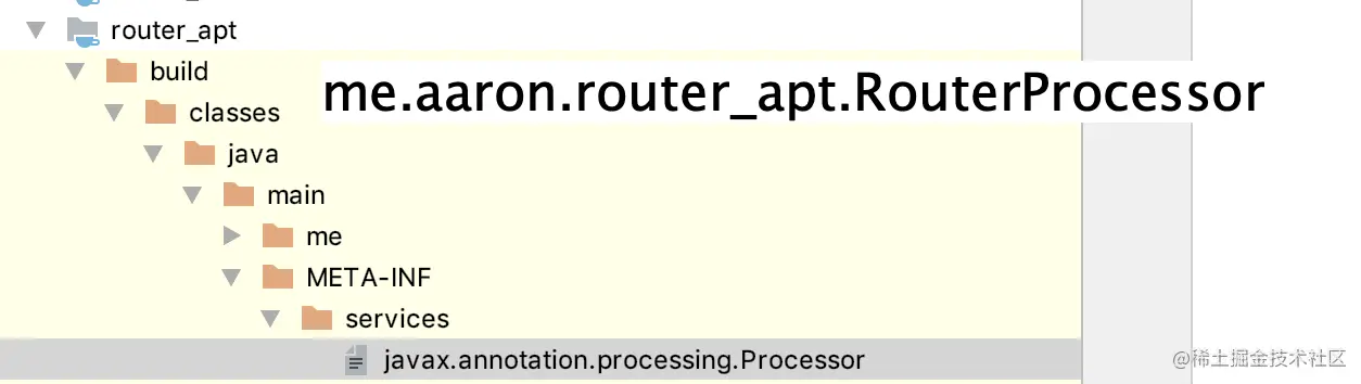 注意上面我们给RouterProcessor使用了一个@AutoService的注解,这个注解是帮助我们为当前注解处理器自动生成META-INF的配置信息的注解,需要添加额外依赖才能使用,如果不用@AutoService注解,我们需要自己手动配置META-INF信息,也是我们自定义注解处理器能够被调用到的前提。
